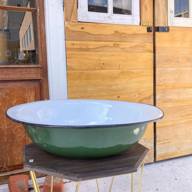 ルーマニア ホーローウォッシュボウル L グリーン 直径60cm 洗面器 洗面台 DIY ガーデニング トレイ 小物入れ ミリタリー 軍物 ヴィンテージ