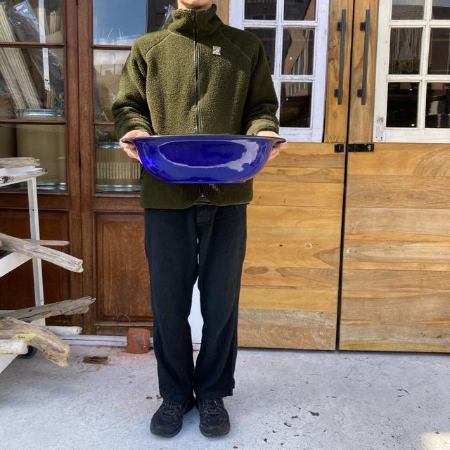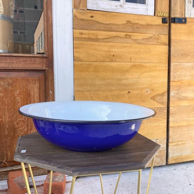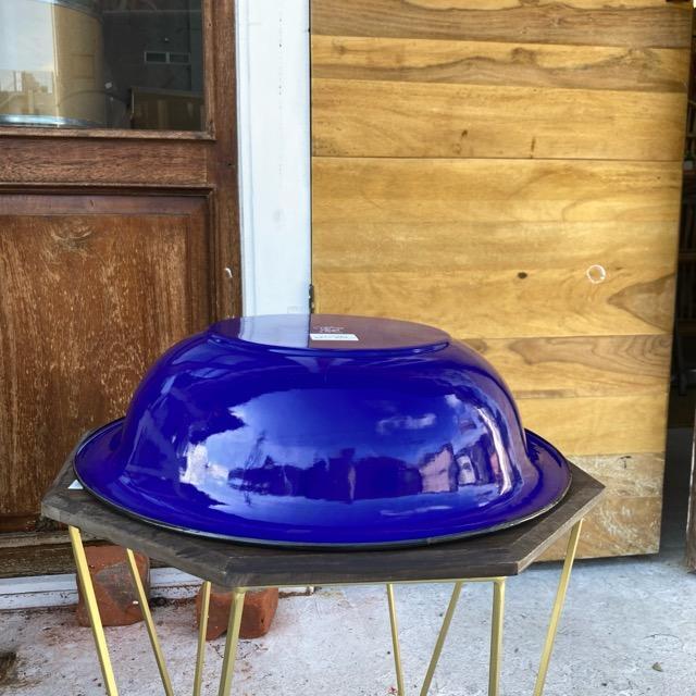 ルーマニア ホーローウォッシュボウル M ブルー 直径45cm 洗面器 洗面台 DIY ガーデニング トレイ 小物入れ ミリタリー 軍物 ヴィンテージ