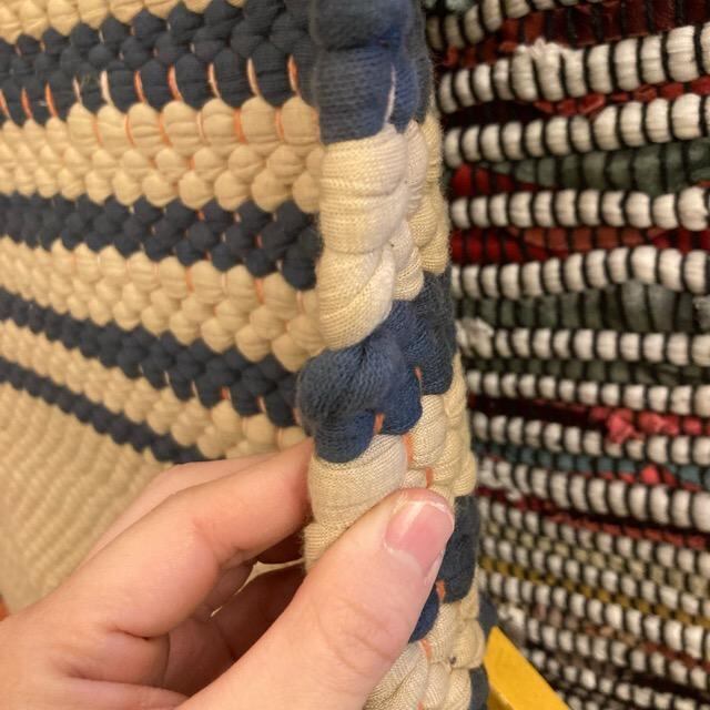 Tシャツのような伸縮性のある生地を織り込んでつくられたマット。